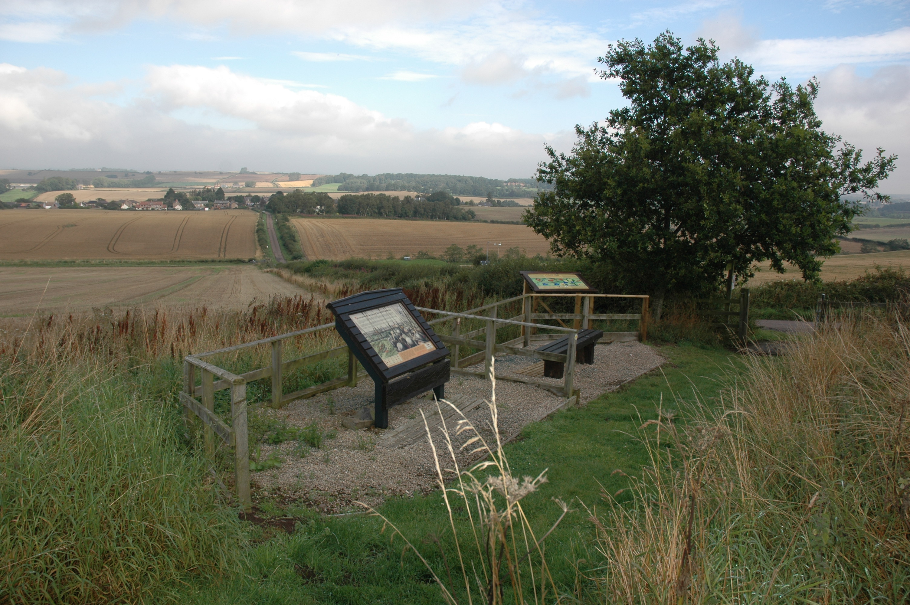 ⇒ Take the road down Branxton Hill into the valley and the Killing Fields Board.