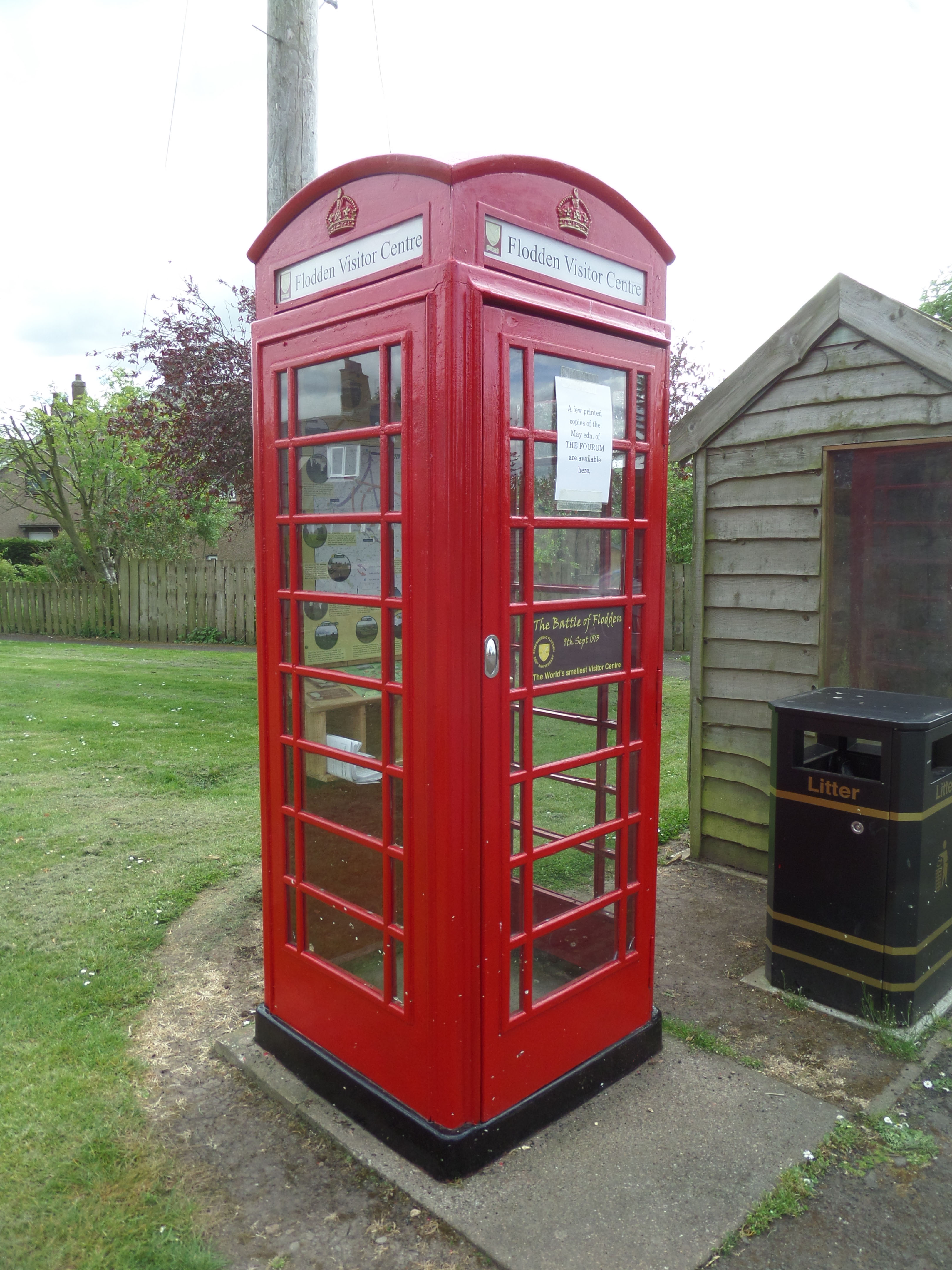 Turn left in the village at the road junction by our world famous ‘Very Small Visitor Centre’ in the red phone box. In here is a map showing the routes of the two armies to the Branxton , and the location of many other local places which are linked to the Battle of Flodden. There is also a recorded message of welcome from the Remembering Flodden Project.